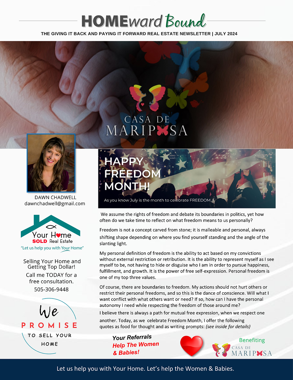 It's FREEDOM month!Dawn ChadwellJul 19, 20241 min readHOMEWARD BoundReal Estate NewsJuly 2024Dawn Chadwell, CEOYour Home Sold Real Estate